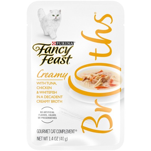 Purina Fancy Feast Broths Creamy Gourmet Wet Cat Food Complement With Tuna Chicken White Fish In Creamy Broth 1 4oz Target